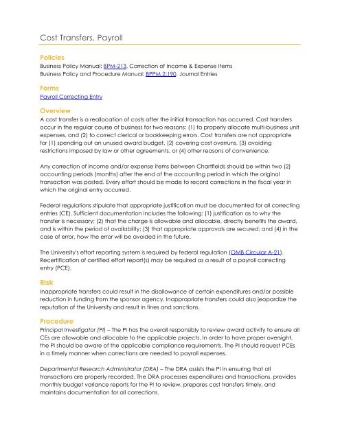 Cost Transfers Payroll Office Of Research