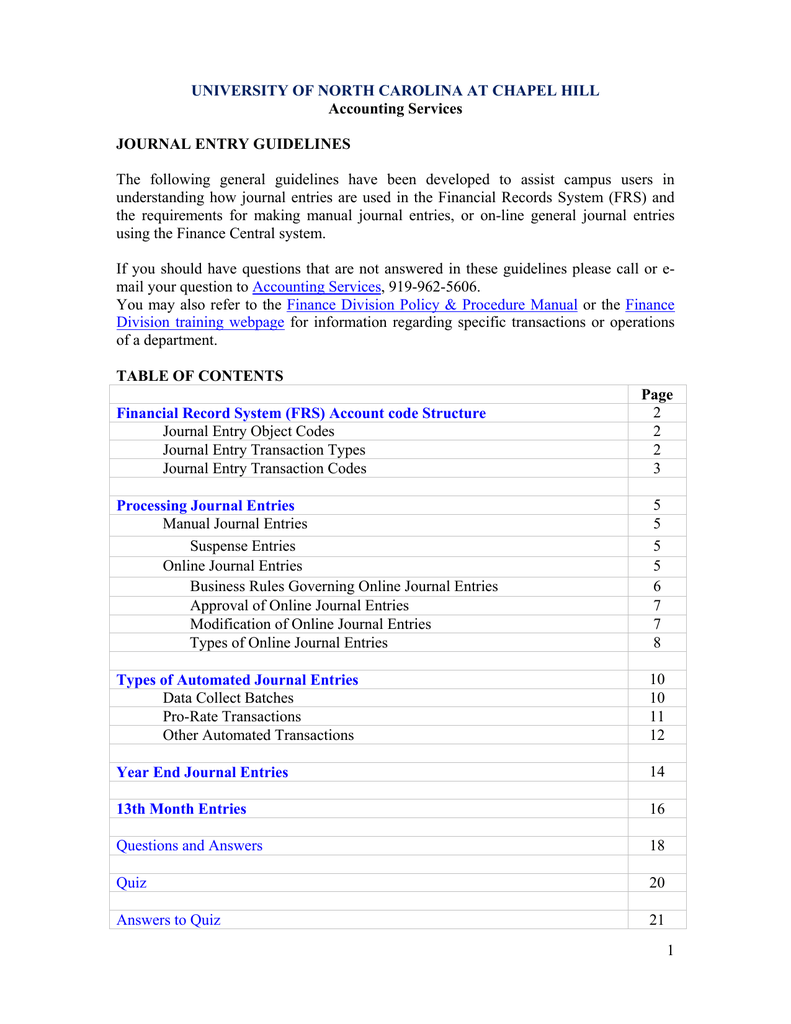 Journal Entry Guidelines The University Of North Carolina At Manualzz